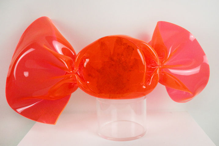Il paradiso colorato di SantaSeveso esplora l’identità umana partendo dal corpo sotto forma di caramelle. La ludicità dei dolci colorati e la drammaticità di quello che sta al loro interno è un giusto connubio che rispecchia la società moderna in bilico tra sostanza e apparenza. Ogni pezzo è unico perché è lo stampo di una persona reale che qui lascia il suo passaggio.
